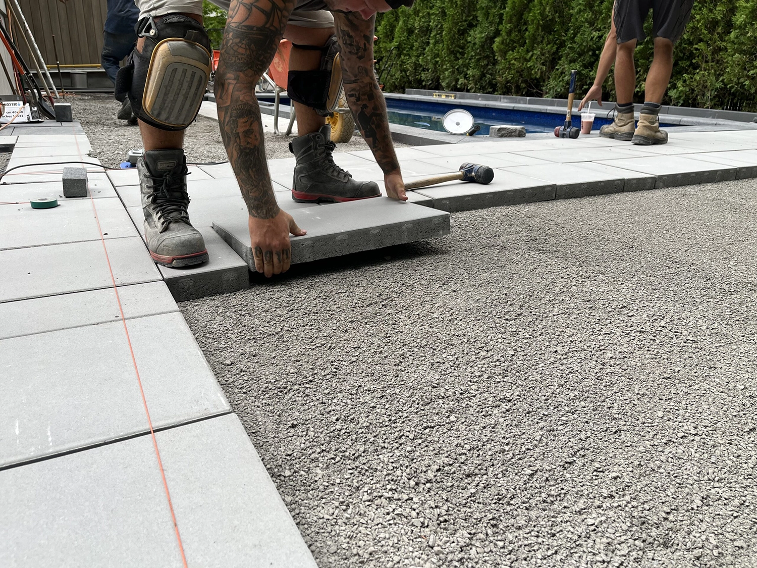 Spécialistes en pose de pavé uni, nous créons des terrasses, des entrées de garage (driveway) et des murets durables et élégants.